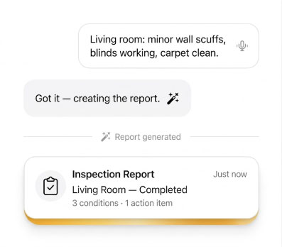 Run every type of property inspection — from move-ins to common areas capture photos and video in one tap, and generates a professional PDF report before you leave the property. Add AI, and it writes the report as you walk.