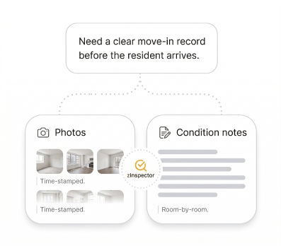 Photos, notes, and condition details are captured before move-in, giving teams a reliable baseline for faster turnovers, cleaner disputes, and stronger documentation from day one.